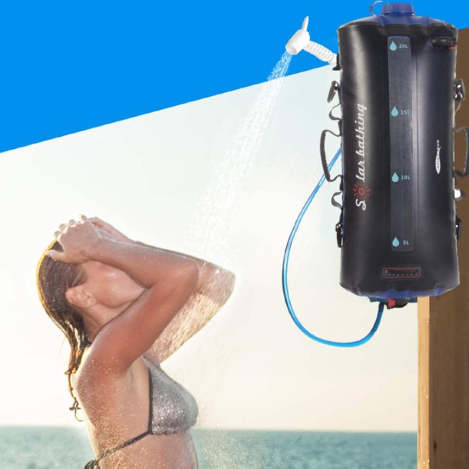 Bolsa de ducha solar duradera para acampar, ducha portátil personalizada, venta al por mayor, bolsa de ducha ecológica para senderismo