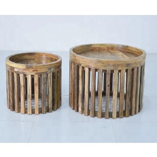 Juego de mesa de centro redonda de madera de mango sólido duradero para el hogar, y restaurante Hotel, muebles de sala de estar, precio al por mayor
