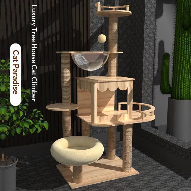 Árbol para Gatos de Madera Maciza Resistente, Torre con Casa, Cómoda Cuerda de Sisal, Fabricante de Artículos Personalizados para Gatos