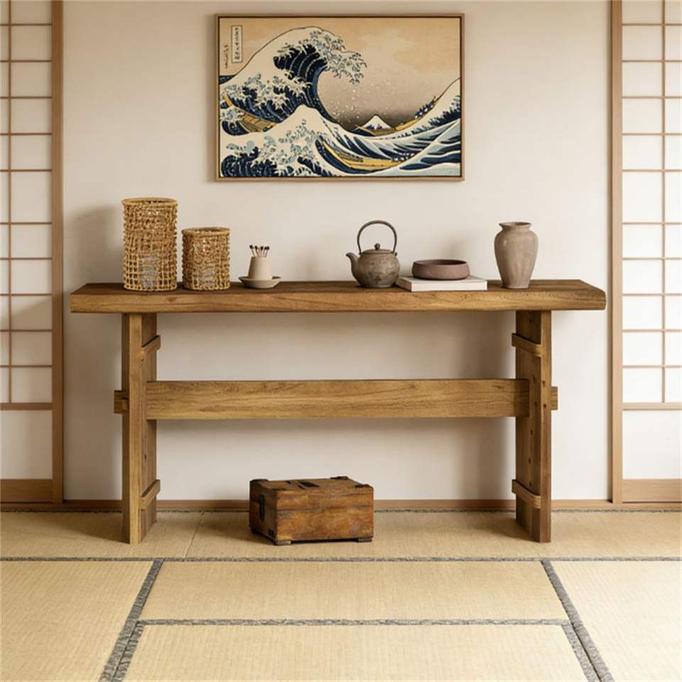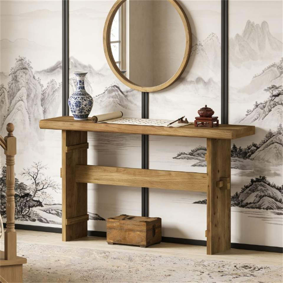Mesa de Entrada de Madera Sólida y Duradera, Mesa de Sofá con Diseño de Madera