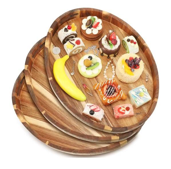 Juego de plato de servicio de madera maciza duradera de 3 vajilla de madera de mango Natural Decoración de mesa para el hogar bandeja de aperitivo para servir alimentos