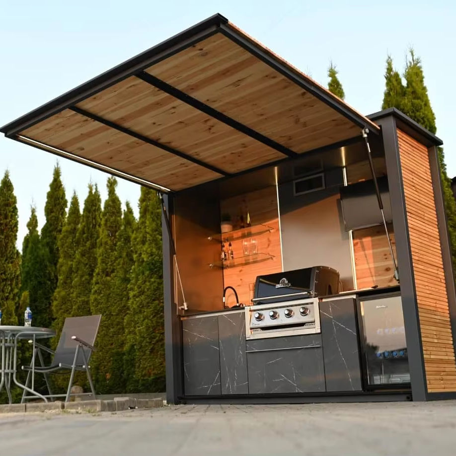 Parrilla para Exteriores Integrada de Acero Inoxidable Resistente, Estación de Horno para Pizza, Pérgola Resistente al Viento y al Agua para Fiestas