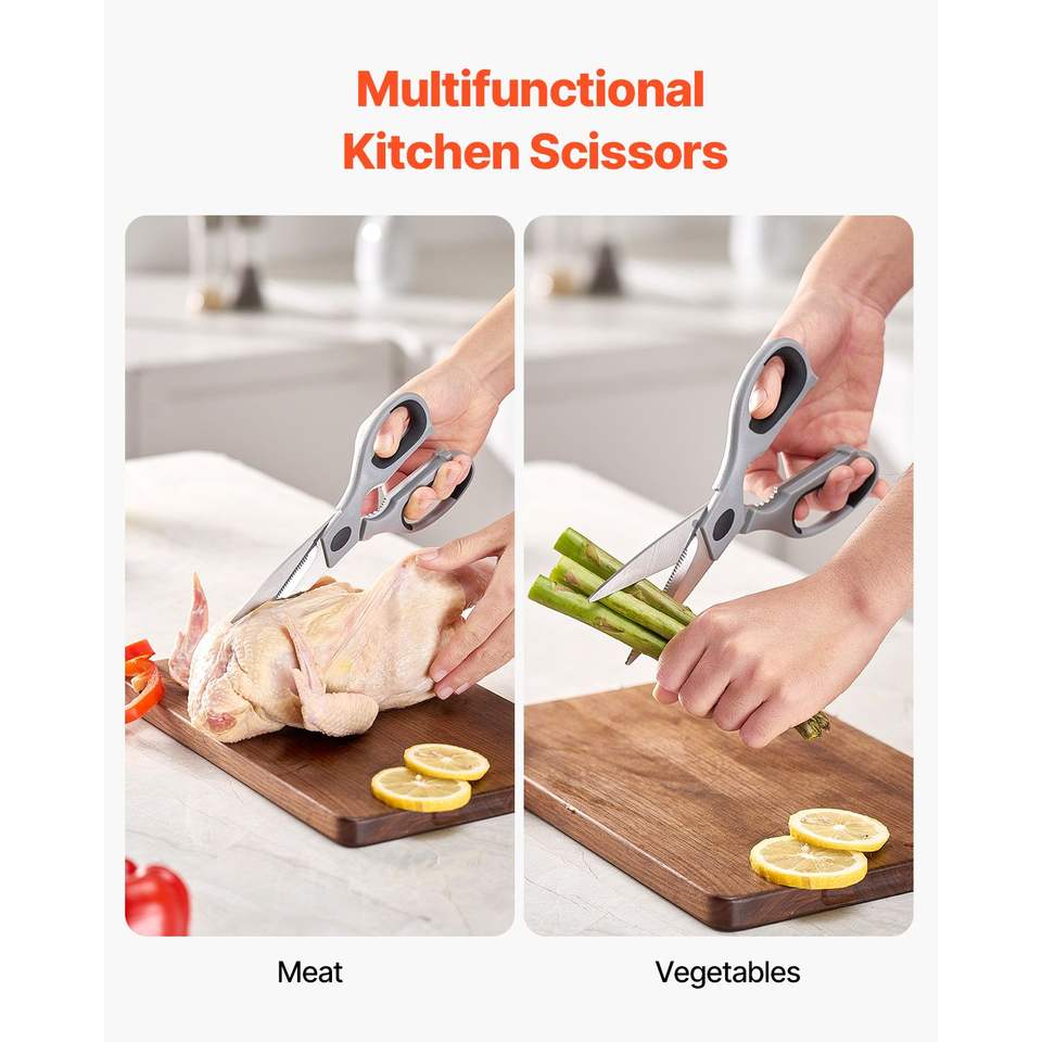 Tijeras de Cocina Duraderas de Acero Inoxidable con Mango de Agarre Suave y Cómodo, Tijeras de Cocina Resistentes con Funda Protectora