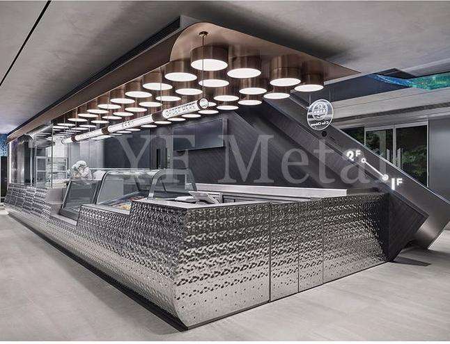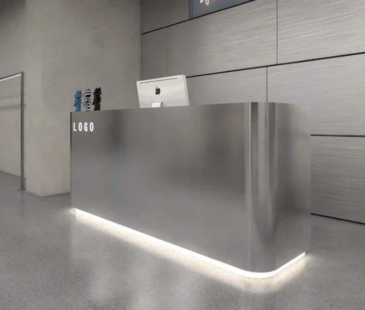 Mesa de recepción LED de acero inoxidable duradera con tapa personalizada, fácil de instalar y desmontable para salones de belleza, cafeterías y locales comerciales