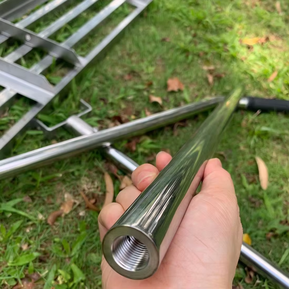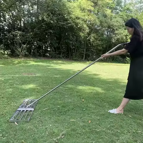 Rastrillo nivelador de césped de acero inoxidable duradero, laúd de césped pintado personalizado, producto de fabricación de chapa metálica