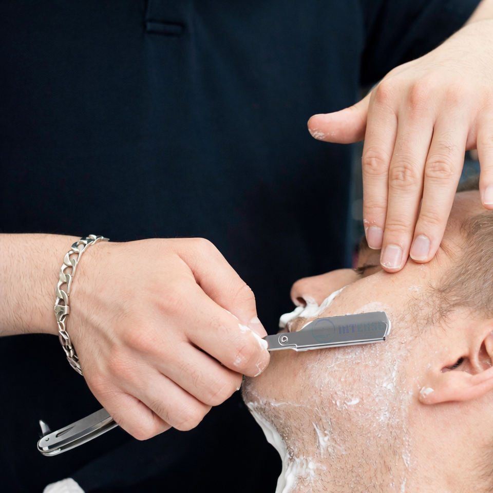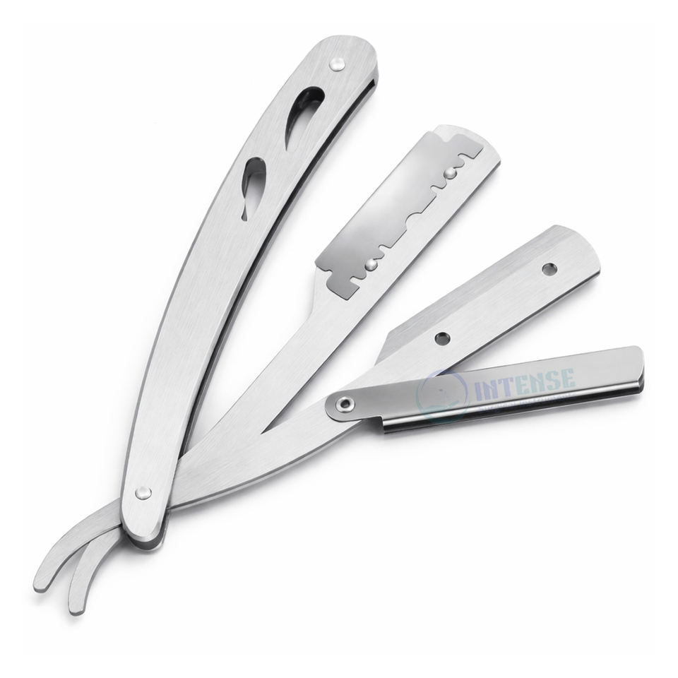 Juego de afeitado para hombre de acero inoxidable duradero, incluye 10 cuchillas de afeitar de doble filo reemplazables INTENSE SURGICAL para uso en barberías.