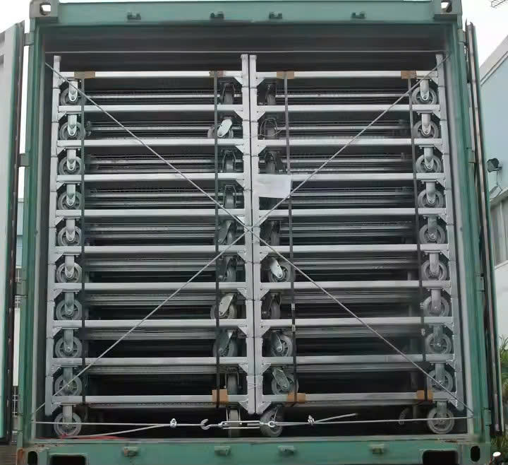 Carrito de acero duradero, contenedor de rollo de cuatro ruedas, OEM personalizable para almacenamiento de exhibición de plantas de invernadero, herramientas industriales
