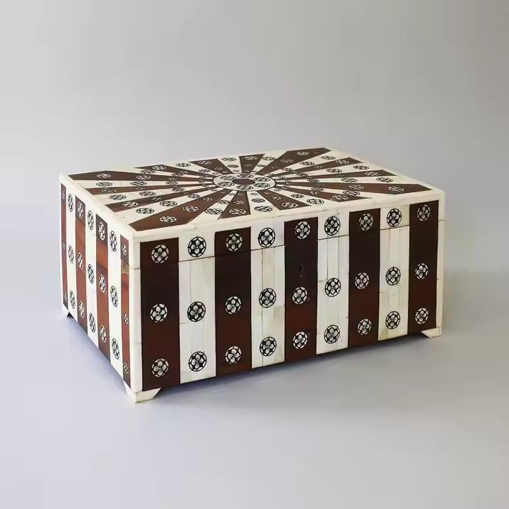 Cajas de almacenamiento duraderas y cajas de embalaje de joyería con incrustaciones de hueso, diseños ecológicos para almacenamiento de joyas y relojes.