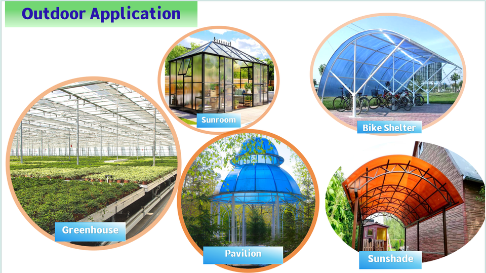 Efecto invernadero, Garaje, Techo, Toldo, Clarabuena, Hotel, Villa, Centro Comercial, Supermercado, Parque, Taller, Almacén, Granja, Patio, Al aire libre, Garaje y cobertizo, Cubierta para techo exteriorAplicación