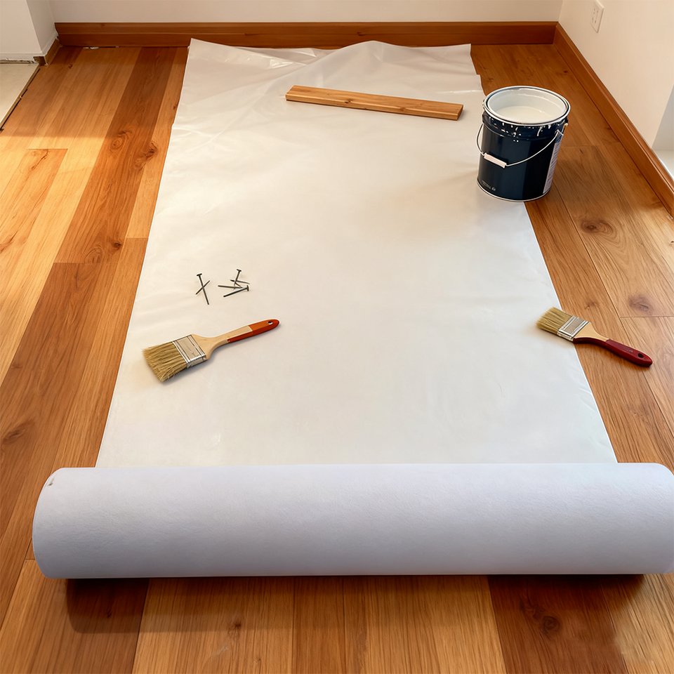 Película de protección de piso impermeable duradera para renovación de casas nuevas, remodelación de casas antiguas y pintura de cubiertas de superficies temporales
