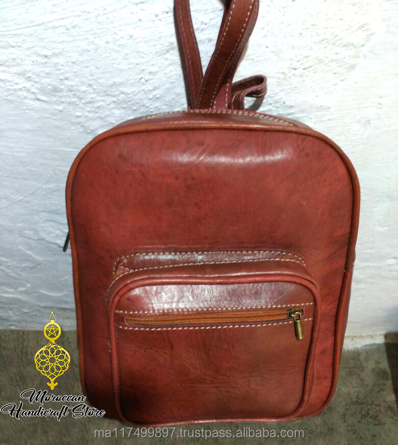 Mochila de cuero genuino marrón marroquí duradera y elegante con forro Categoría de producto elegante