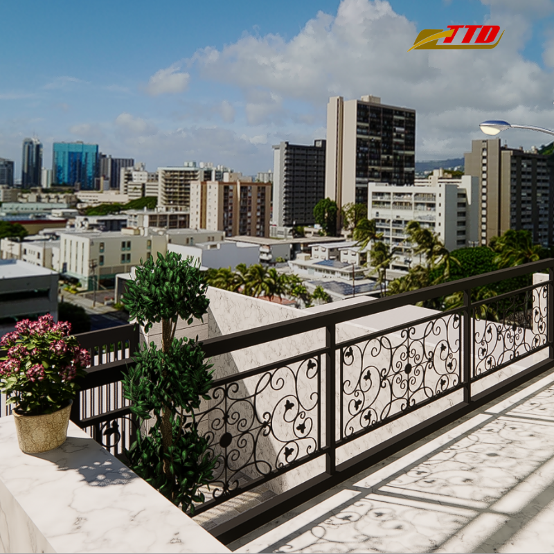 Barandilla de balcón de hierro forjado duradera y elegante hecha a medida en Vietnam con revestimiento en polvo resistente a la corrosión