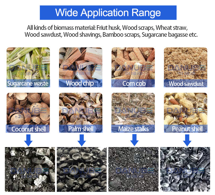 Materias primas aplicables:Bicarbonato de aserrín de madera Cáscara de Palma de bambú Cáscara de nuez Cáscara de arroz