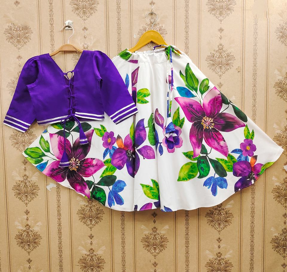 Conjunto de Lehenga Choli Infantil con Estampado Floral Abstracto de Durga, Dupatta Ligero, Largo hasta el Suelo, Moderno, para Fiestas Festivas, Niña, Diwali