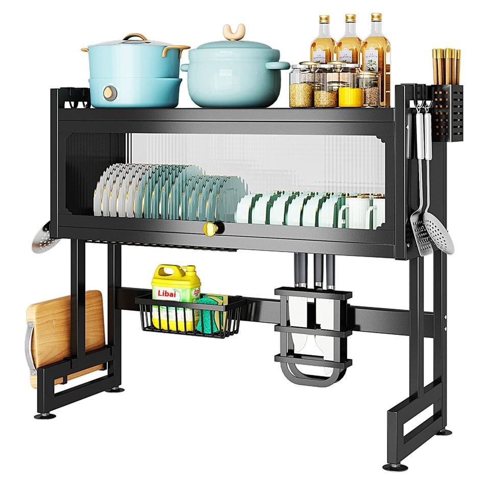 Estante de almacenamiento de cocina para el hogar a prueba de polvo, palillos de Metal, cuchillo, cuenco, organizador de platos, fregadero, cesta, cuenco, estante para un acceso conveniente