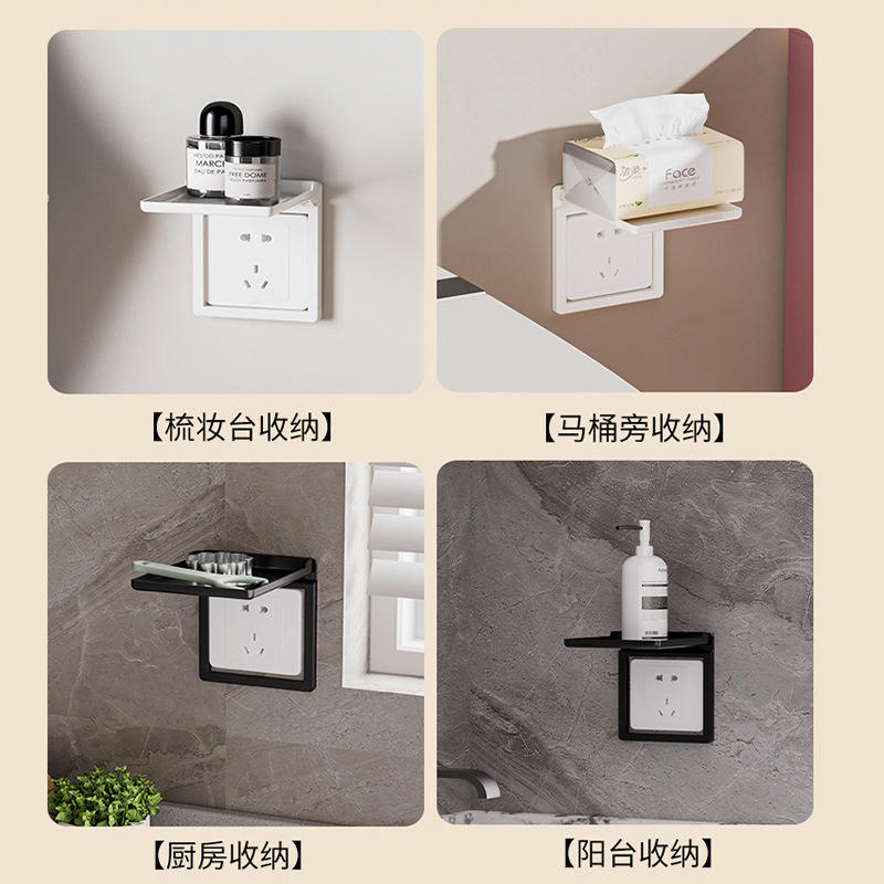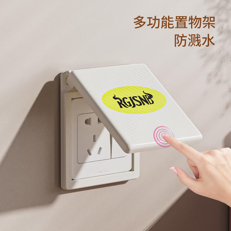 Dustproof Cover Rectangle Wall Mounted Beige Black Punch Free For Bathroom Living Room Bedroom Socket Storage