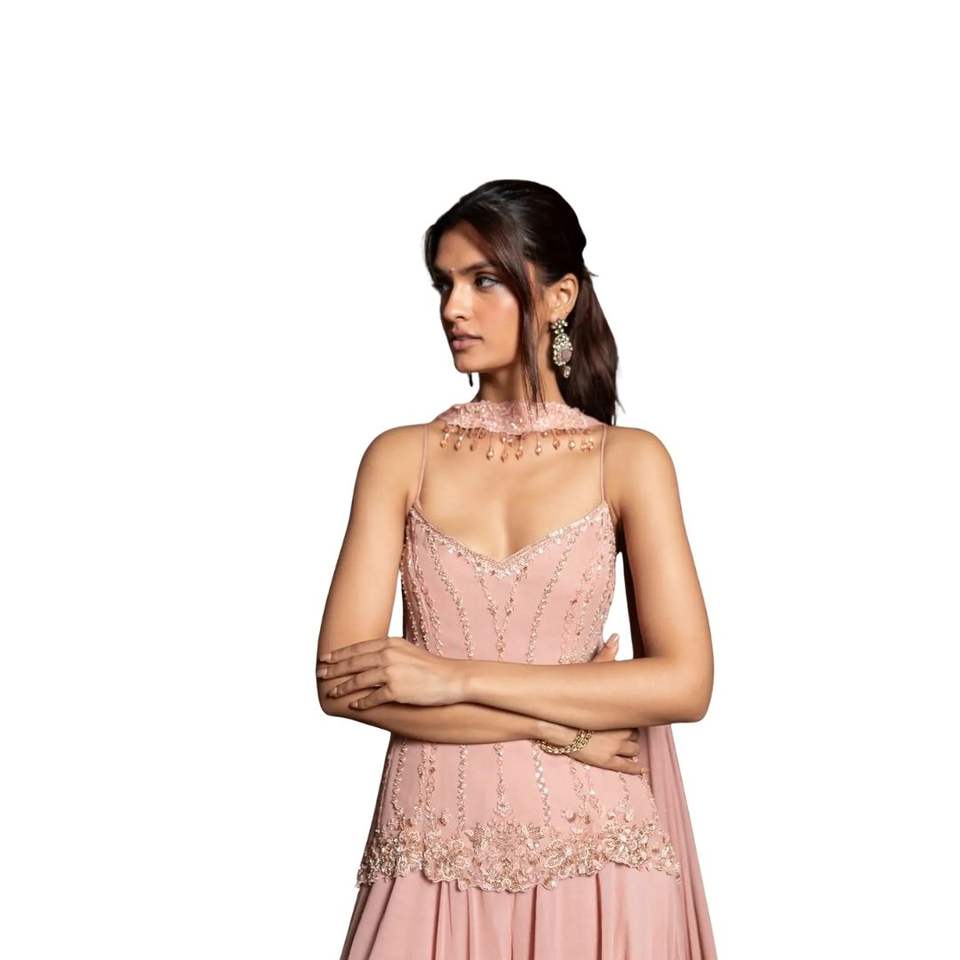 Juego de Kurta Sharara de gasa bordada a mano de color rosa polvoriento con Dupatta para fiesta nupcial Recepción de bodas Ropa festiva