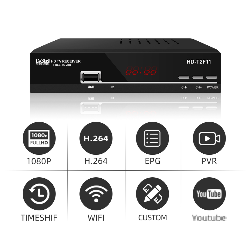 Decodificadores digitales DVB T2, doble potencia, CC, 12V, CA, 240V, receptor de aire libre, compatible con Mpeg4, Pvr, decodificador DVB T2, decodificador FTA