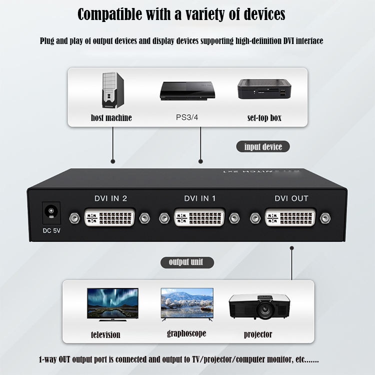 Conmutador Dvi 2 en 1 Salida 2x12 Puerto Frecuencia compartida 4K 1080p Conmutación automática con control remoto