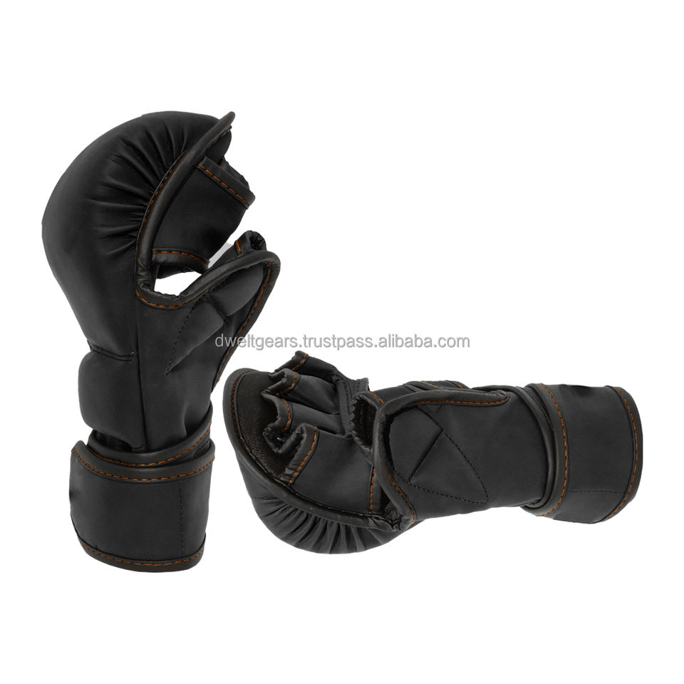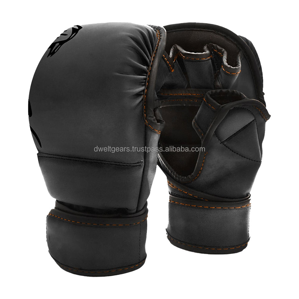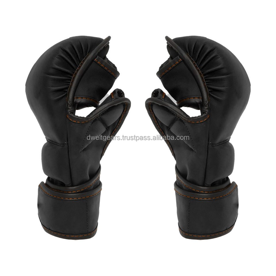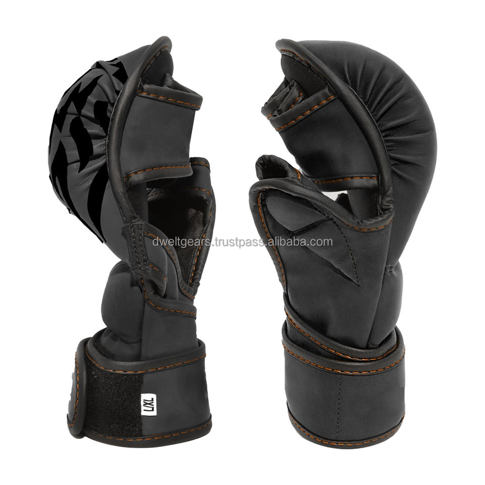 Guantes de Boxeo y MMA Personalizados Dwelt Gear, Medios Dedos, Transpirables, de Cuero PU, Cierre de Gancho y Bucle, para Entrenamiento de Lucha en Jaula, Venta al Por Mayor