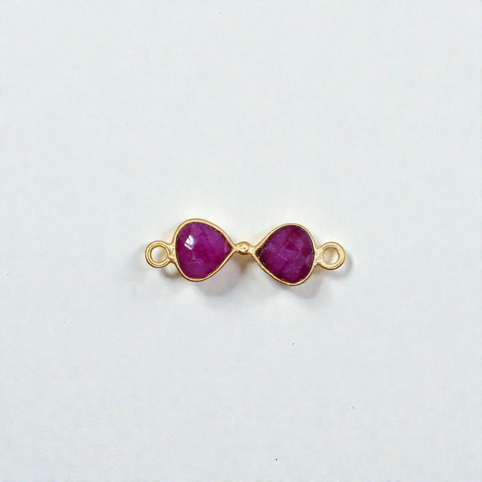 Conector de Piedra Preciosa de Rubí Teñido de Doble Aro de 8 mm para DIY