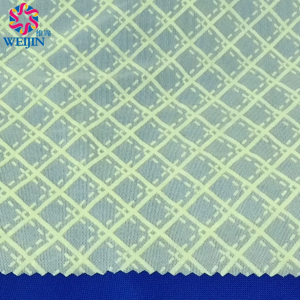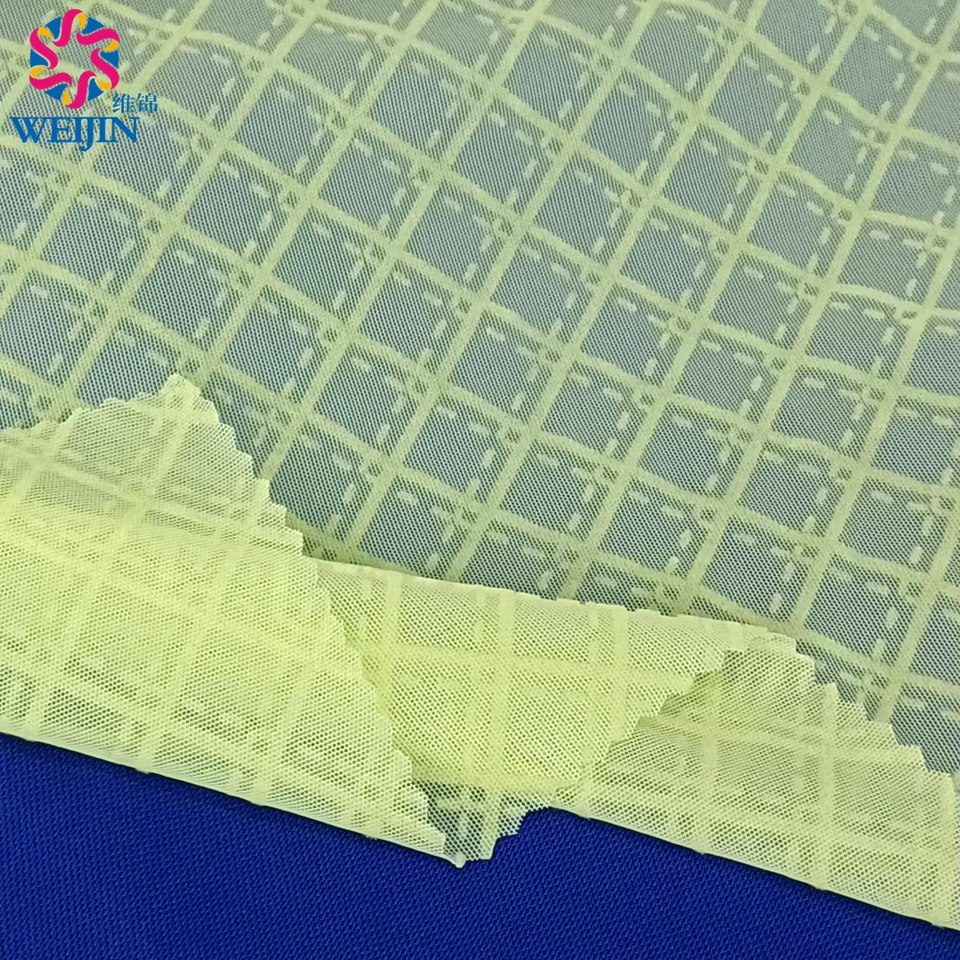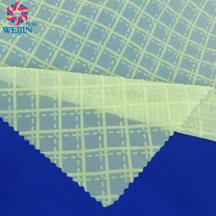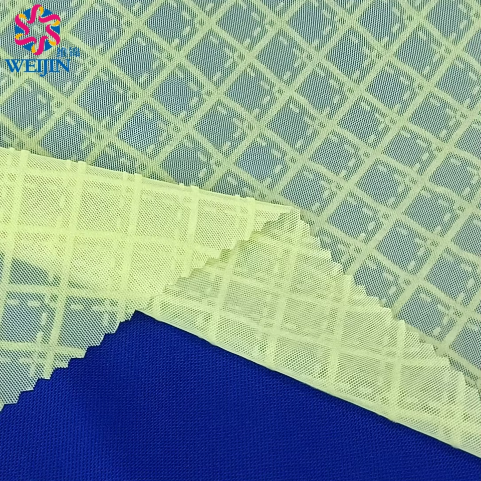 Patrón de teñido Diseño textil Punto 100% Poliéster Tul Power Mesh Flock Print Checkered Diamond Net Fabric para ropa Vestido