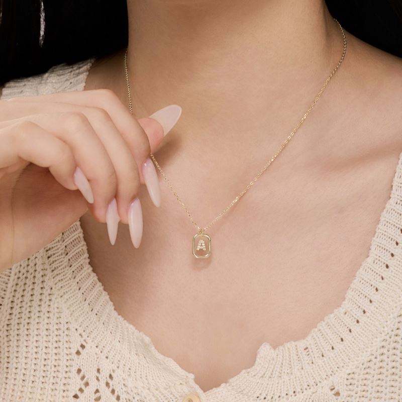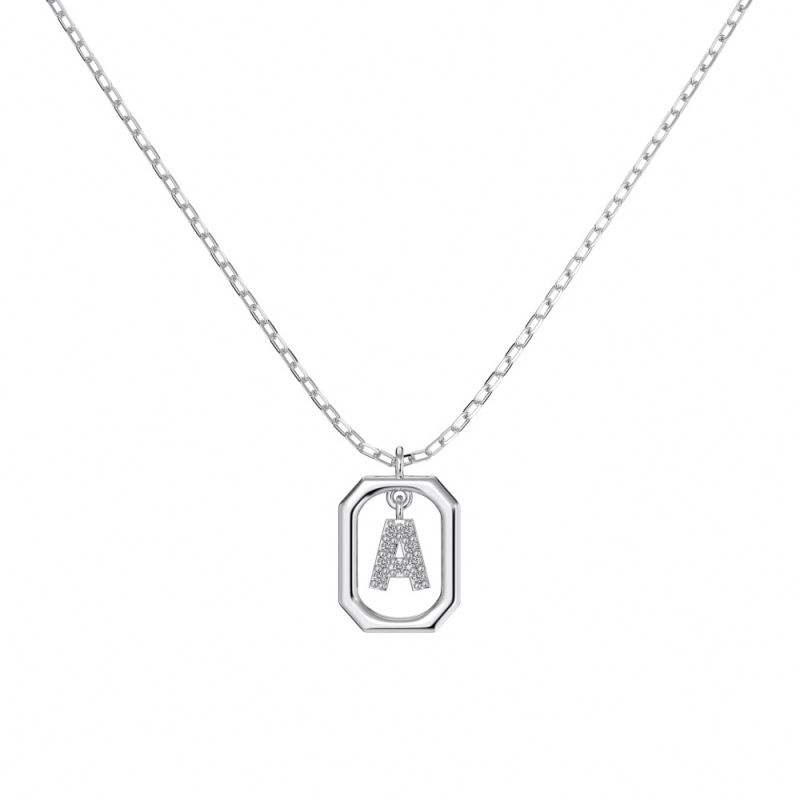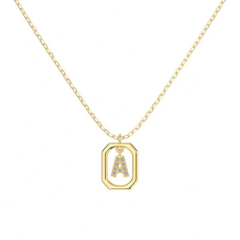 Collar con Inicial Dylam-A, Chapado en Oro de 14K sobre Rodio, Plata 925, Circonia 5A, Letras Pequeñas, Monograma, para Mujer