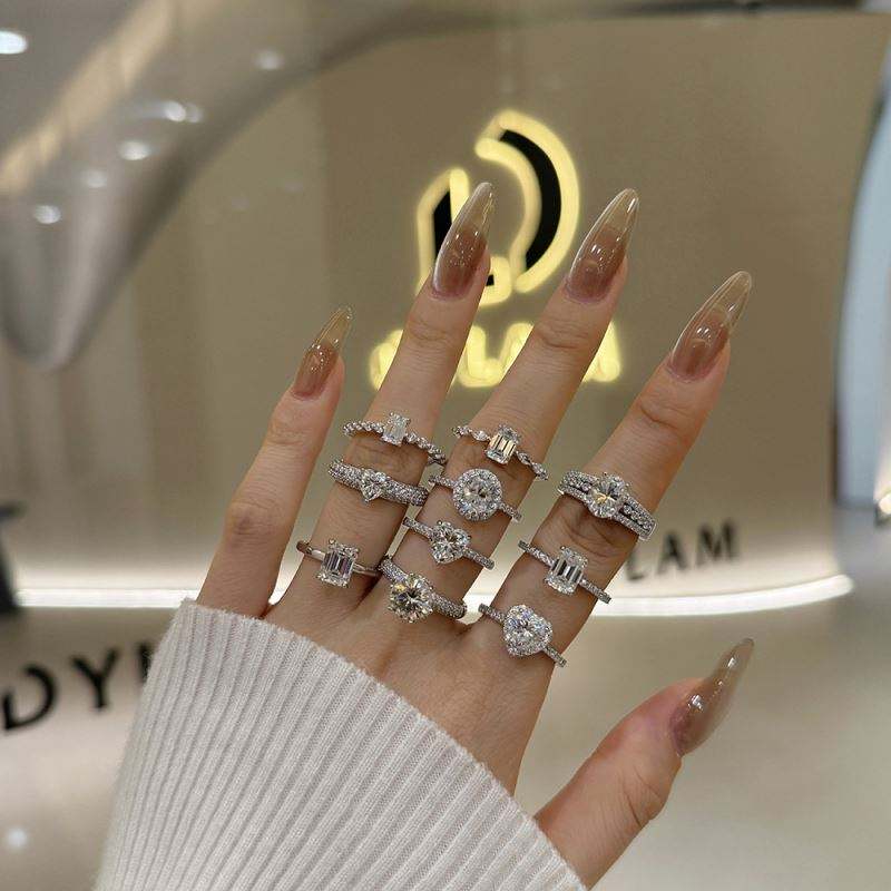 Fábrica de Joyería Fina Dylam, Anillo de Eternidad Personalizado en Plata de Ley con Circonita 5A, Anillo con Piedra de Moissanita en Forma de Corazón de 0.5ct, D VVS1