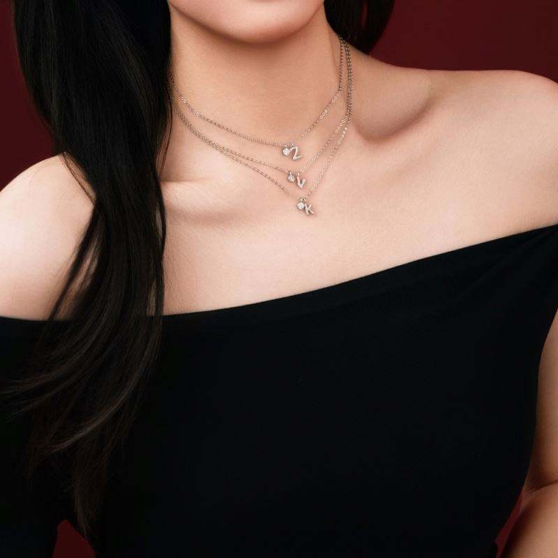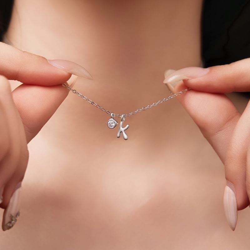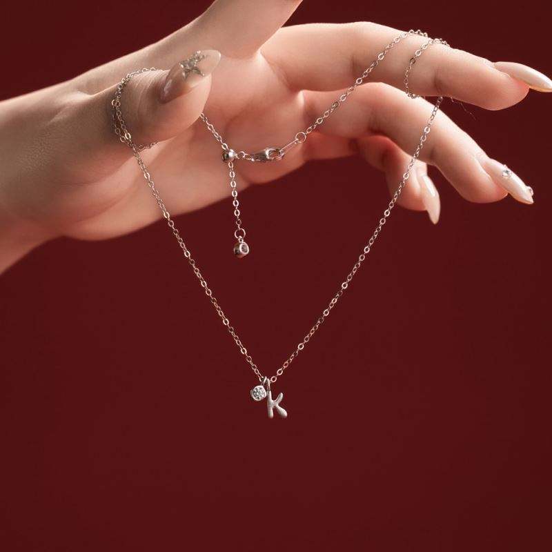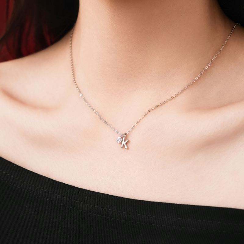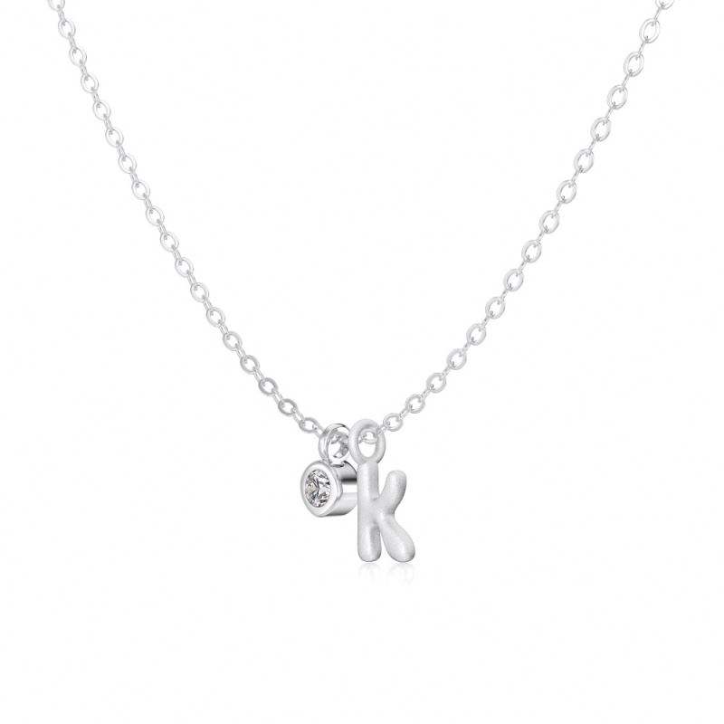 Collar con Inicial Dylam, Chapado en Rodio, Plata 925, Circonia 5A, Letras Pequeñas -K-, Colgante con Monograma para Mujer