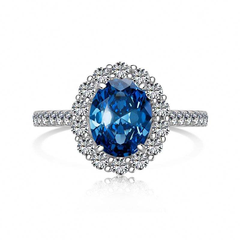 Anillos de Compromiso y Boda Dylam Sparkle Collection, Diseño Clásico, Plata S925 con Baño de Rodio, Diamante, Zafiro, Zirconia 5A, Halo