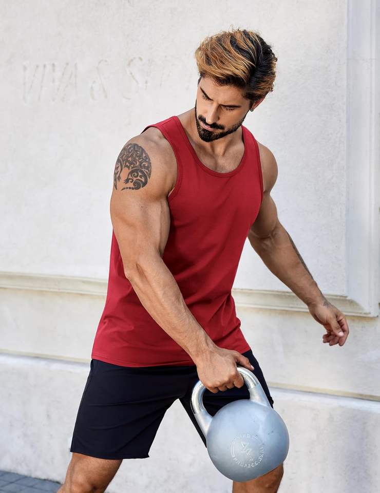 Camiseta sin mangas para hombre, tela suave de spandex/algodón, secado rápido, transpirable, fresca, ligera, elástica y de ajuste cómodo.