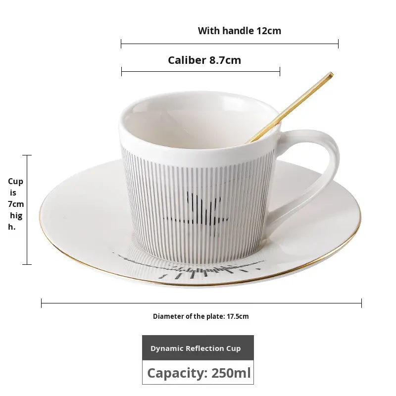 Taza de Café de Cerámica con Espejo de Reflejo Dinámico, Platillo con Diseño Minimalista a Rayas, Apta para Lavavajillas y Microondas, Caja de Color