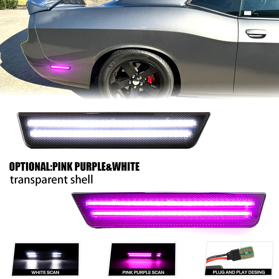 Luces Laterales Dinámicas Rojas, Azules, Rosas, Verdes y Blancas para Dodge Charger 11-14 Challenger 08-14, Reflectores Indicadores Laterales para Parachoques Trasero