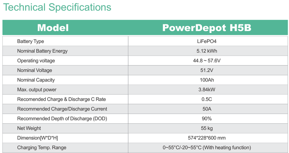 Charging: 0 to 55℃; Discharge: -20 to 55℃Temperatura de funcionamiento (℃)