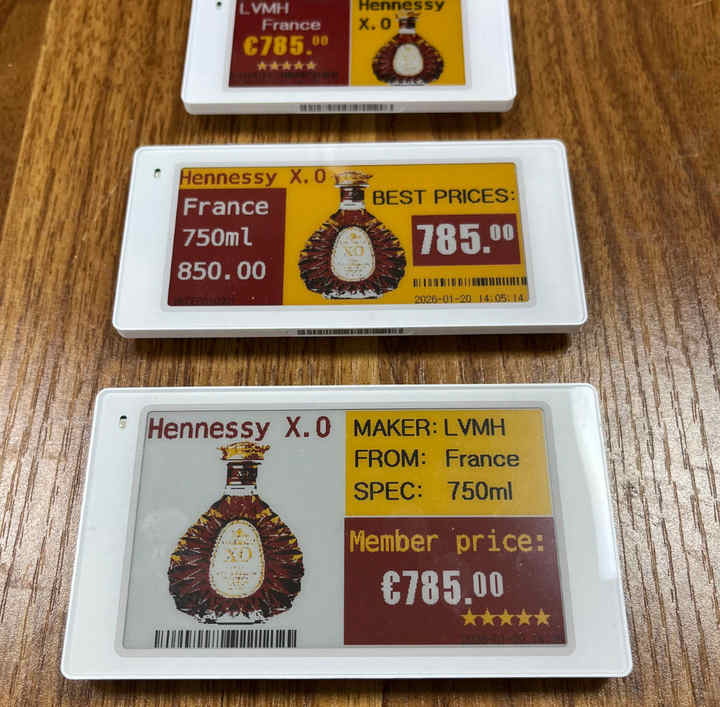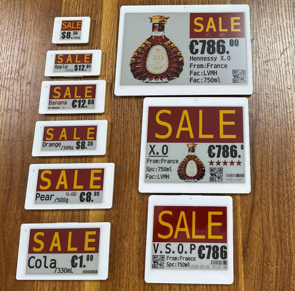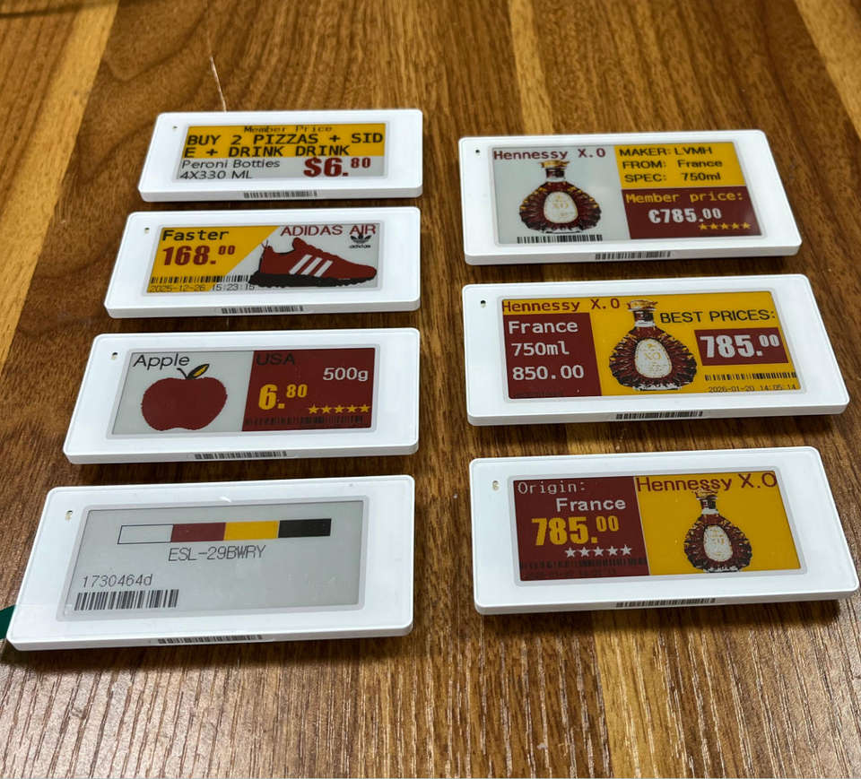 Etiqueta Electrónica de Precio (ESL) con Pantalla de Tinta Electrónica (E-ink), NFC, EPD, ESP32, API, SPI, 2.4GHz, Software, Bluetooth BLE5.0, para Estantes Digitales