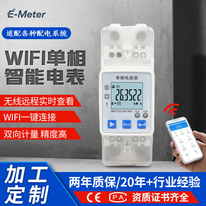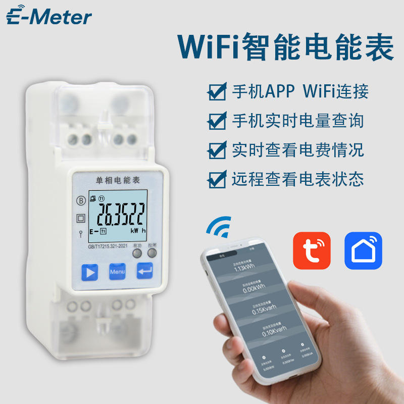 E-Meter Single Phase Wifi Smart Energy Meter Lcd Display Class 2.0 Accuracy With Mobile App Control