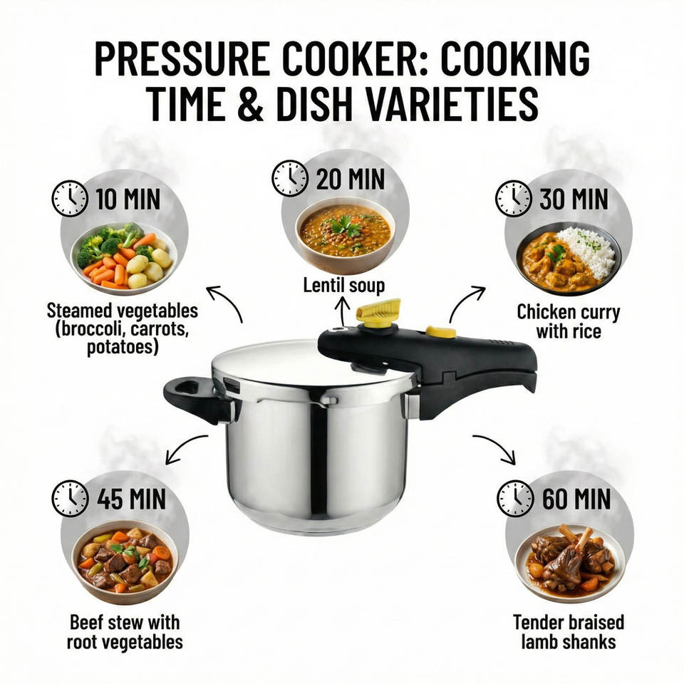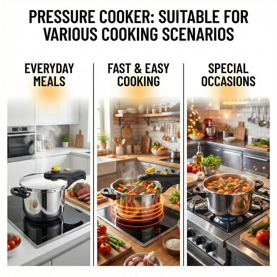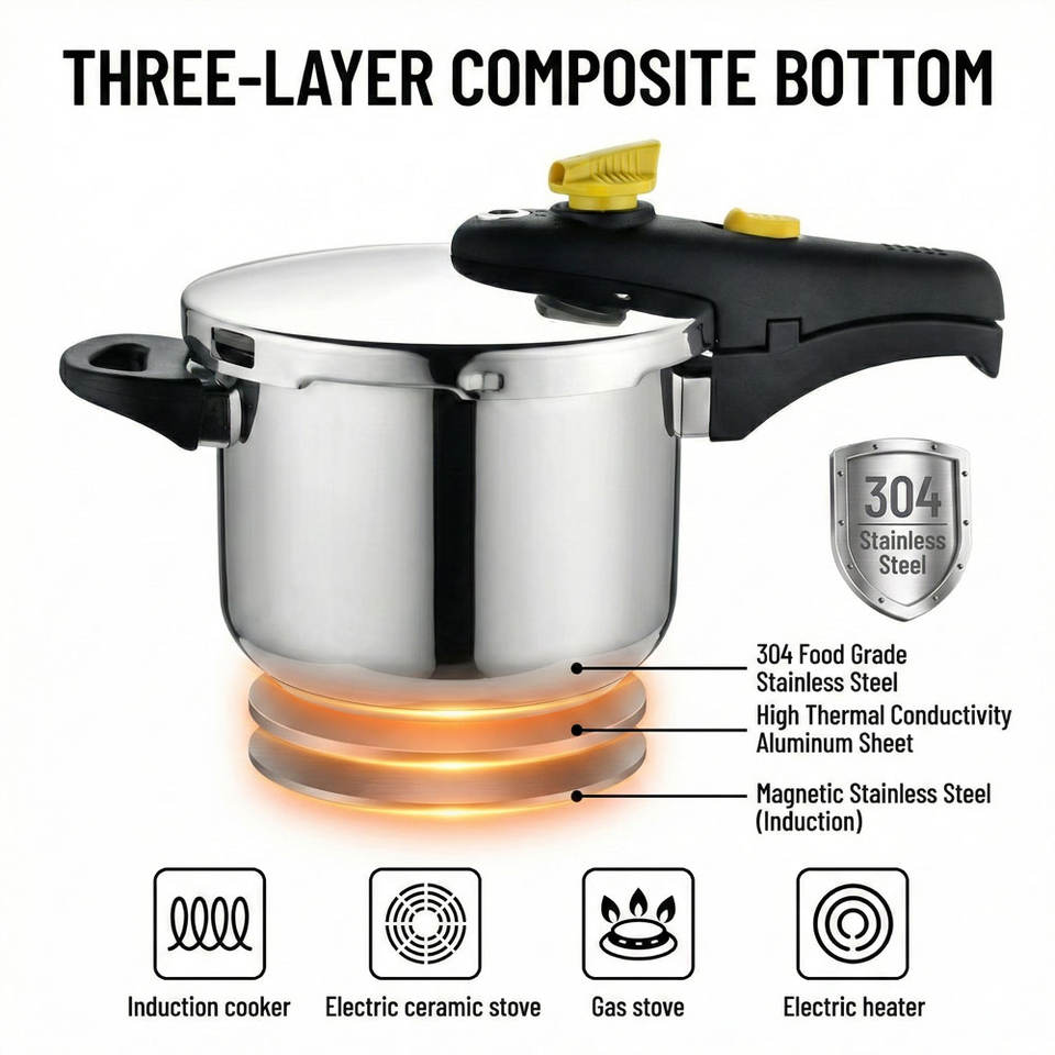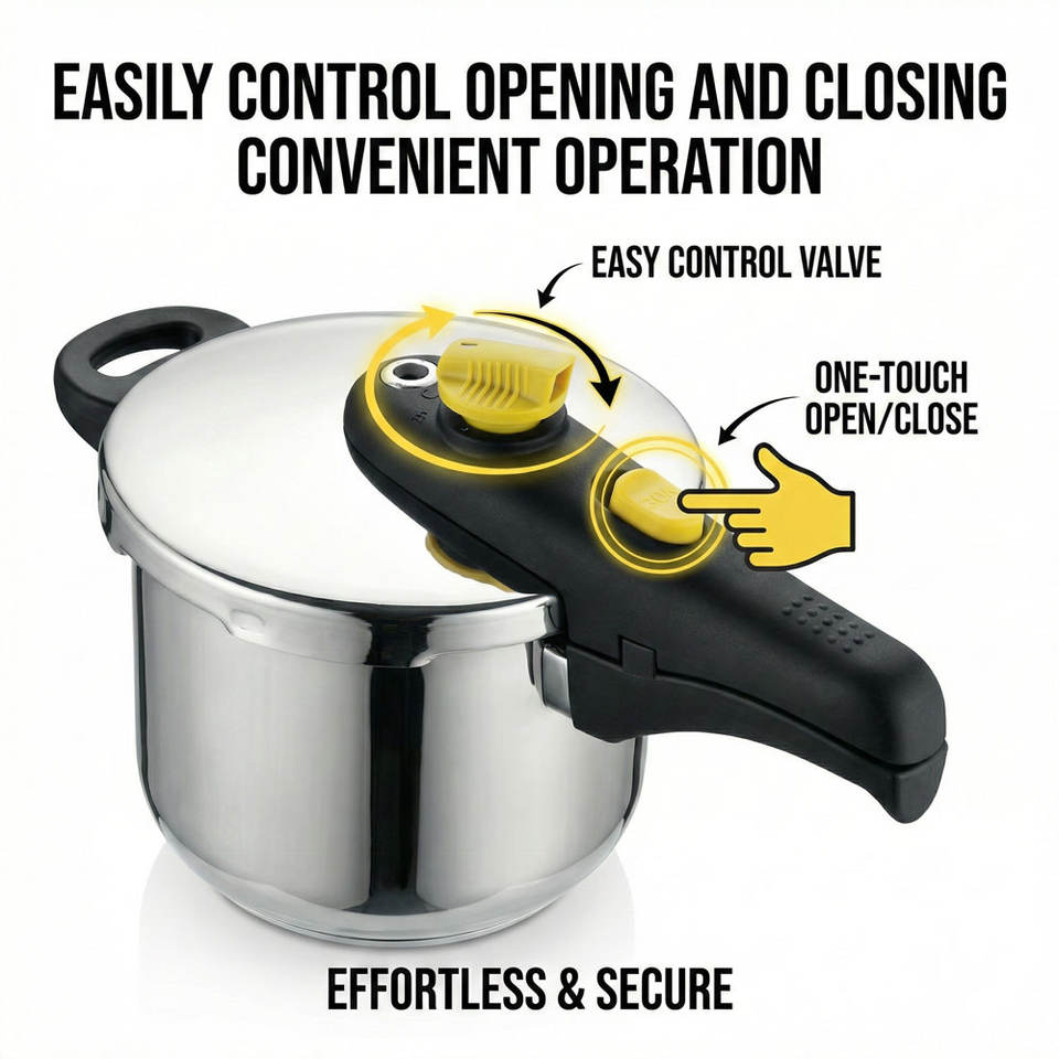 Olla a Presión de Acero Inoxidable E-TOP de 6/7 Cuartos de Galón con Cierre de una Mano, Olla a Presión Multifuncional para Cocina con Tapa de Vidrio