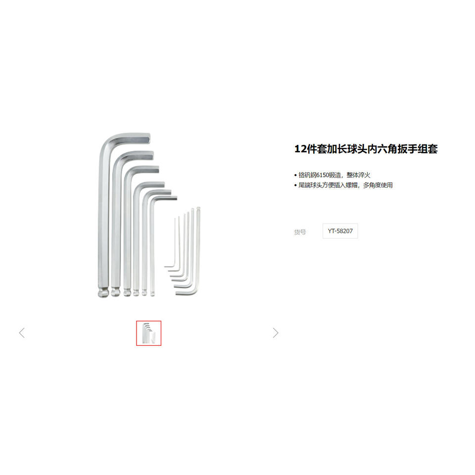 Juego de Llaves Hexagonales E-Tuo de 11 Piezas con Cabeza Esférica Extendida, Grado Industrial, Acero al Cromo Vanadio, Cromado
