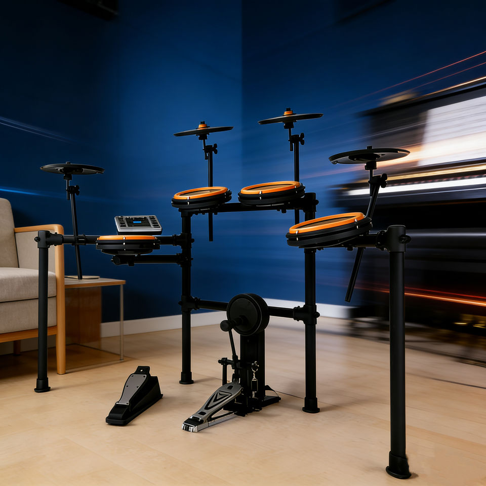 Batería Electrónica E-force Pulse Plus de Diseño Especial para Niños Principiantes, Plegable, de Doble Capa, Construcción Metálica, con Malla