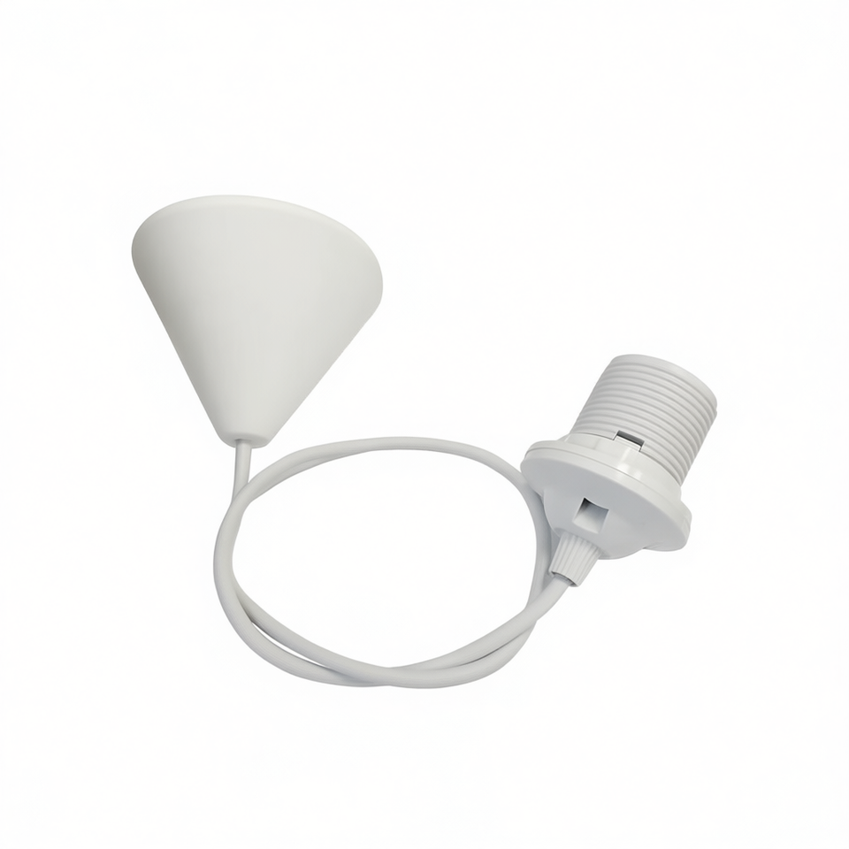 Lámpara colgante E27 con pantalla cónica y cable blanco para iluminación interior