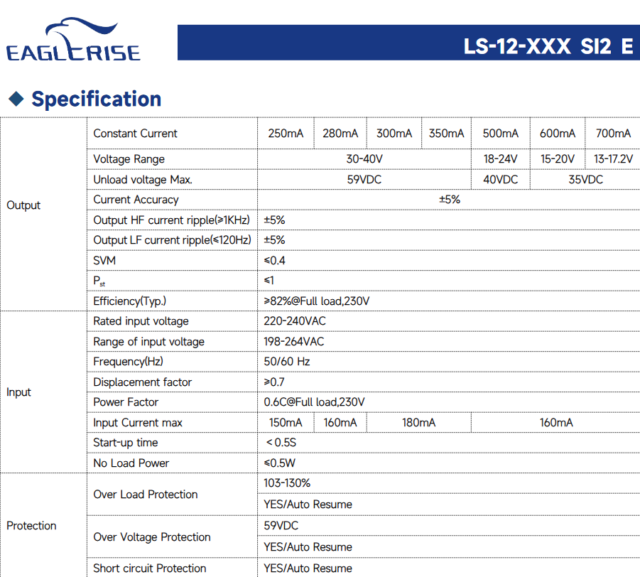EAGLERISE-Fuente de alimentación de aluminio, fuente de alimentación de 12 LED W, entrada 220-240VAC, 30-40V, 5 años de garantía, 30-40V, 30-40V, 1, 2 E, 300mA