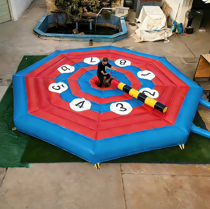 EASYFUN Juego Inflable Personalizado Wipeout Bike Standing Challenge con Brazo de Barrido, Juego de Carnaval Wipeout para Alquiler
