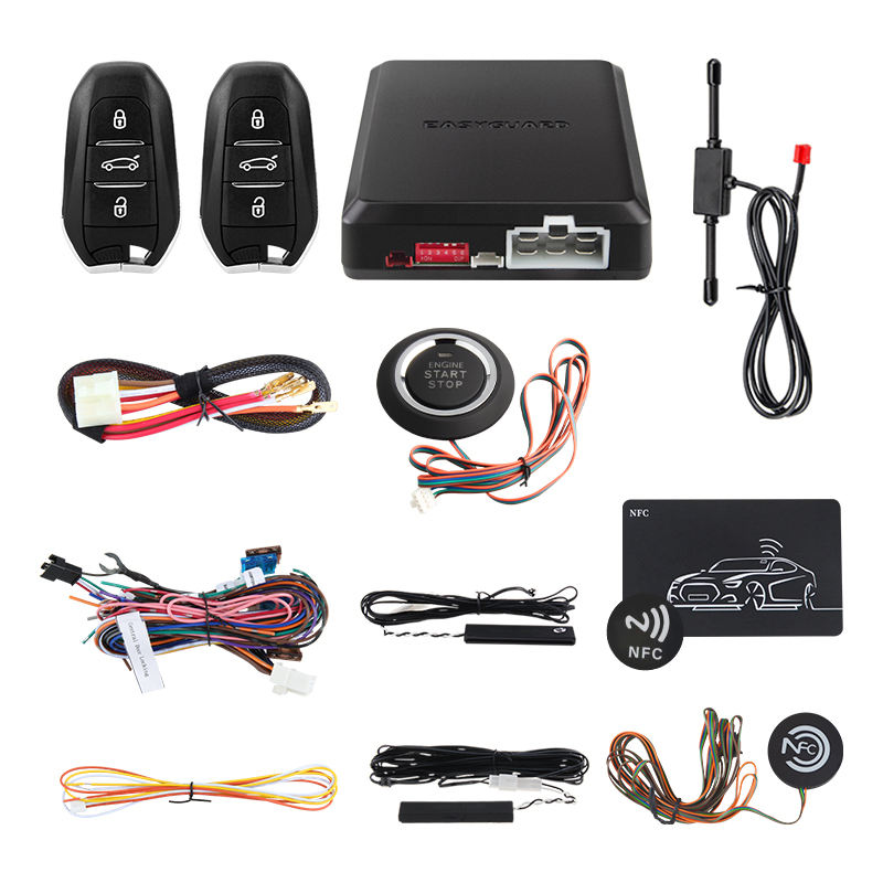EASYGUARD-Alarma de coche unidireccional con tarjeta NFC, botón de arranque remoto del motor, PKE, entrada sin llave, anti secuestro