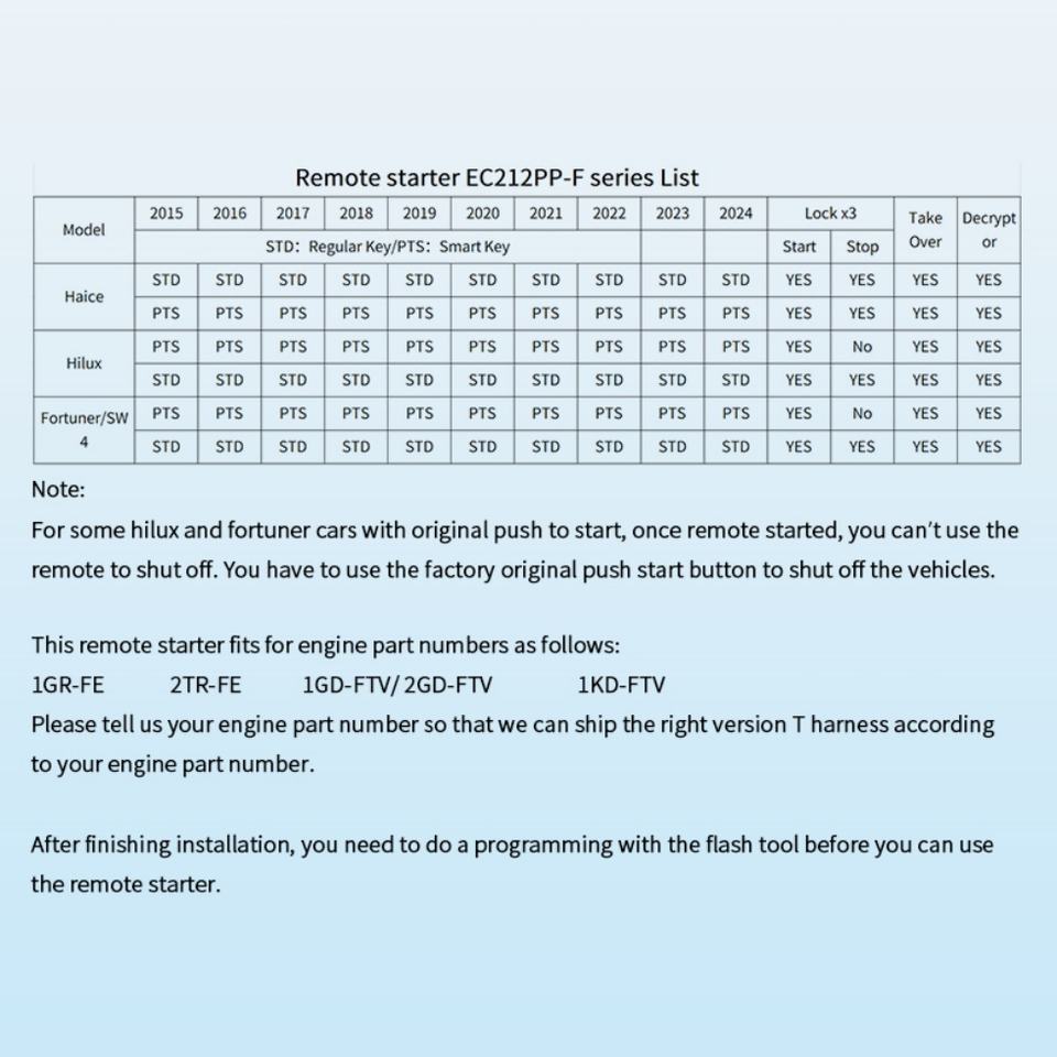 Arrancador Remoto con Llave de Fábrica EASYGUARD Plug and Play, Compatible con Toyota Hilux Fortuner Hiace 2015-2024, Solo Transmisión Automática