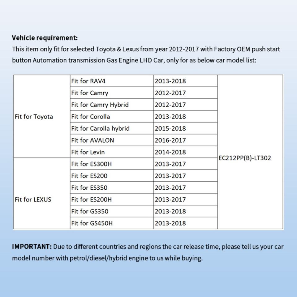 Arrancador Remoto EASYGUARD Plug & Play Compatible con RAV4/Camry/Corolla/AVALON/Levin, Solo para Autos con Motor de Gasolina y Transmisión Automática