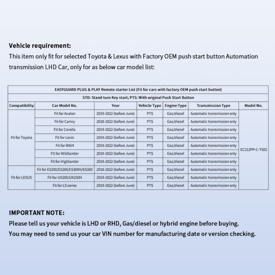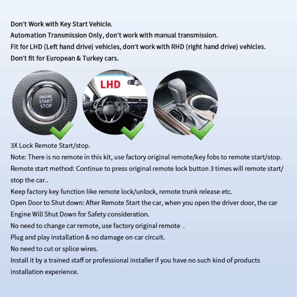 Kit de Arranque Remoto EASYGUARD, Plug and Play, Compatible con Toyota Camry/Avalon/Corolla/RAV4, Transmisión Automática, Solo para Autos con Volante a la Izquierda