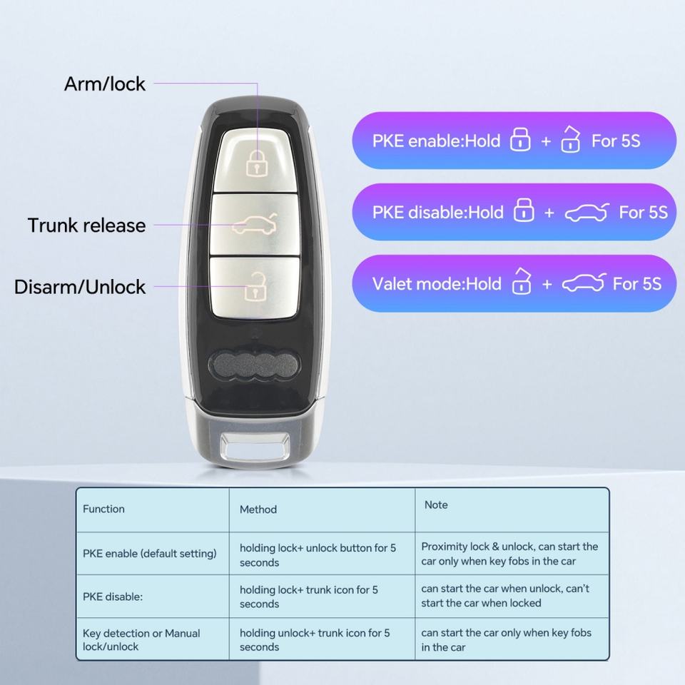 Sistema de Entrada sin Llave EASYGUARD Compatible con AUDI con Botón de Encendido OEM de Fábrica y Control Remoto AU3 con Acceso Confortable