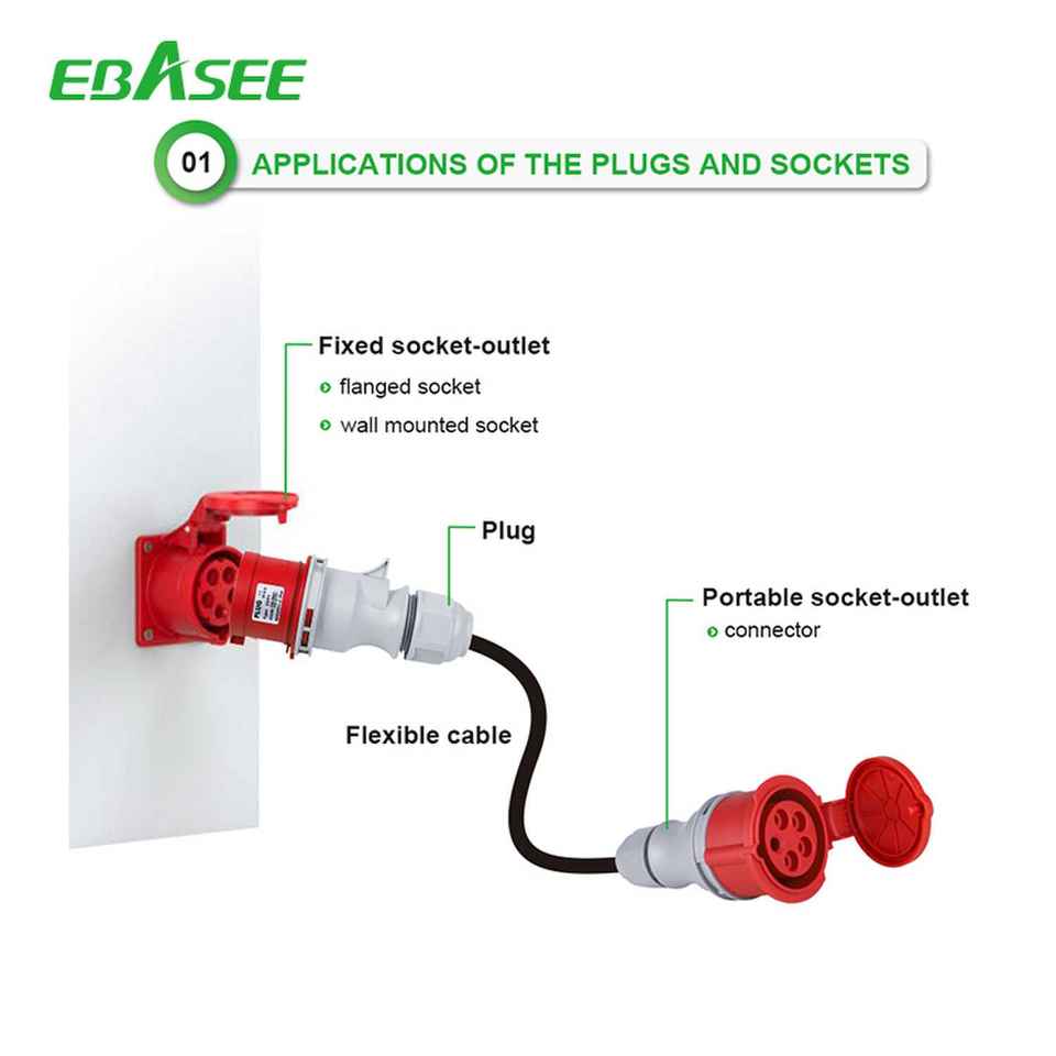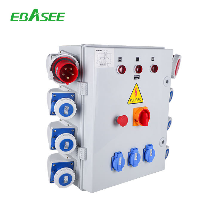 Caja de Distribución de Energía Metálica EBASEE, Tomacorriente Industrial IEC 60309, Unidad de Alimentación CEE de 16A a 125A para Construcción/Eventos/Fábrica