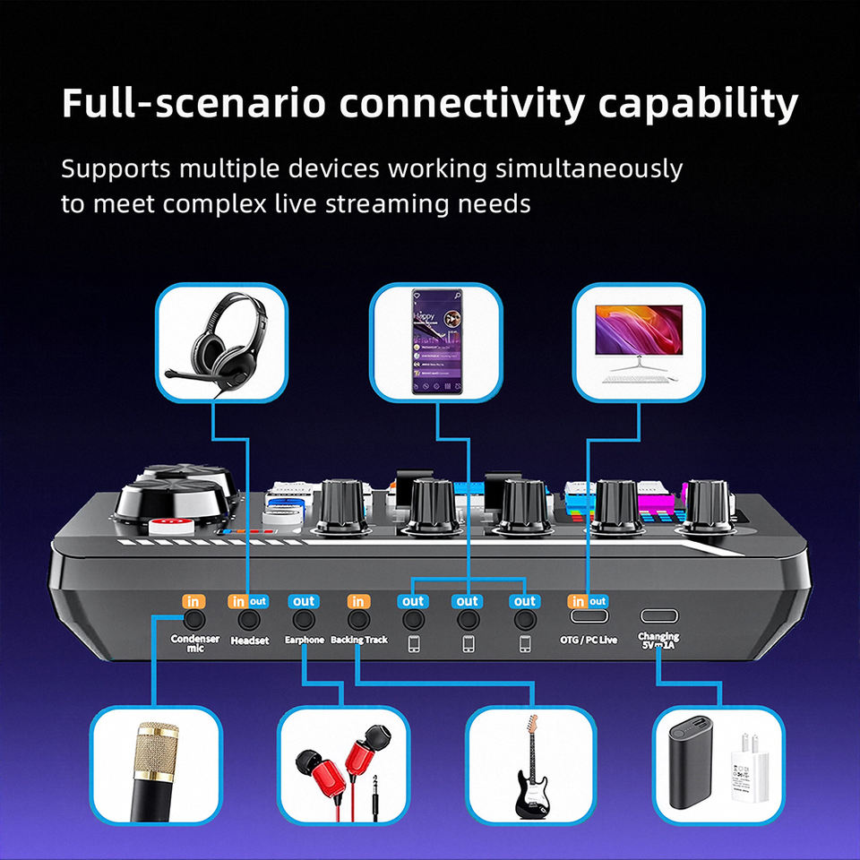 Tarjeta de Sonido EC900 RGB, Mezclador de 16 Bits y 44.1kHz, Interfaz de Audio USB con Batería de 1200mAh para Transmisión en Vivo, DJ y Creación de Contenido