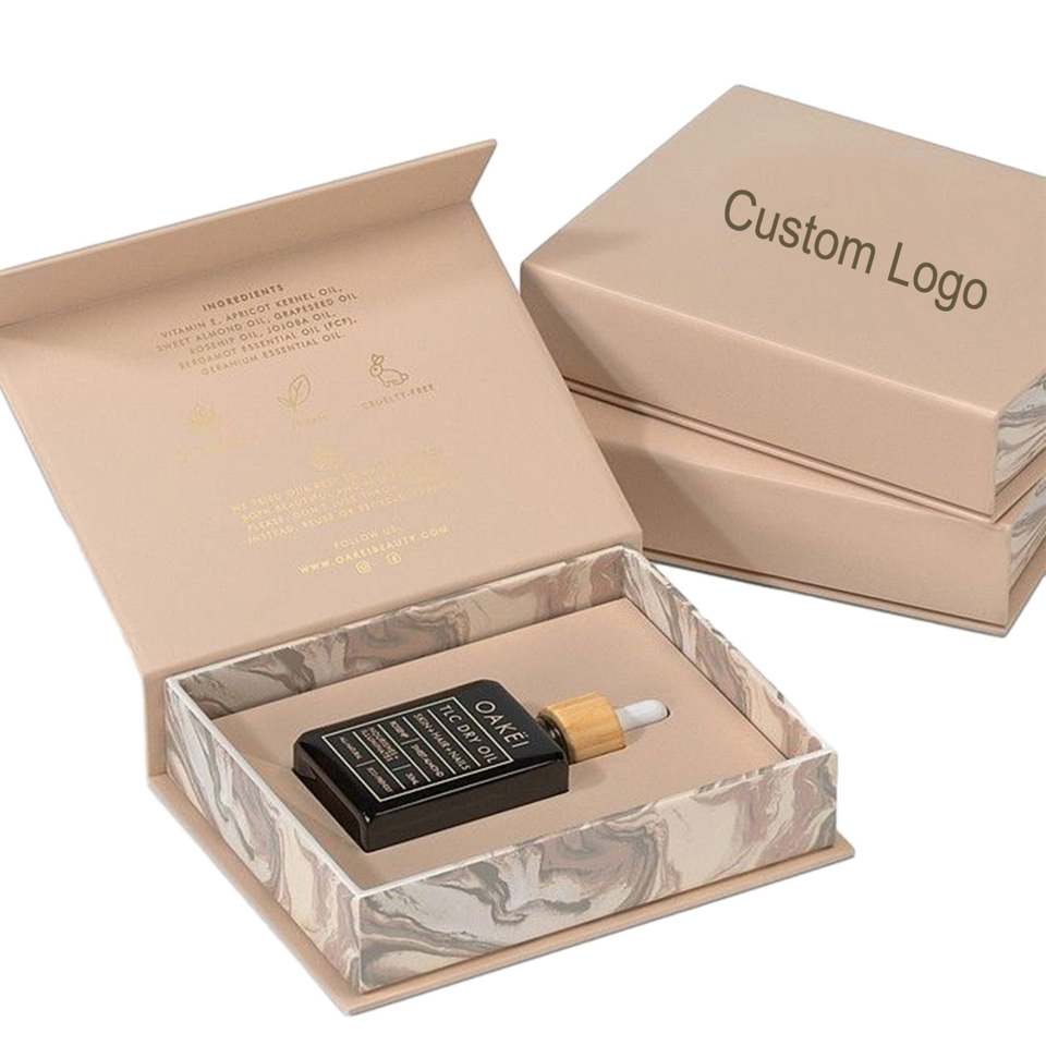 Respetuoso con el medio ambiente, reciclable, de lujo, personalizado, pequeño, elegante, magnético, Flip Top, caja de regalo, cosméticos, botella de aceite, embalaje con inserto
